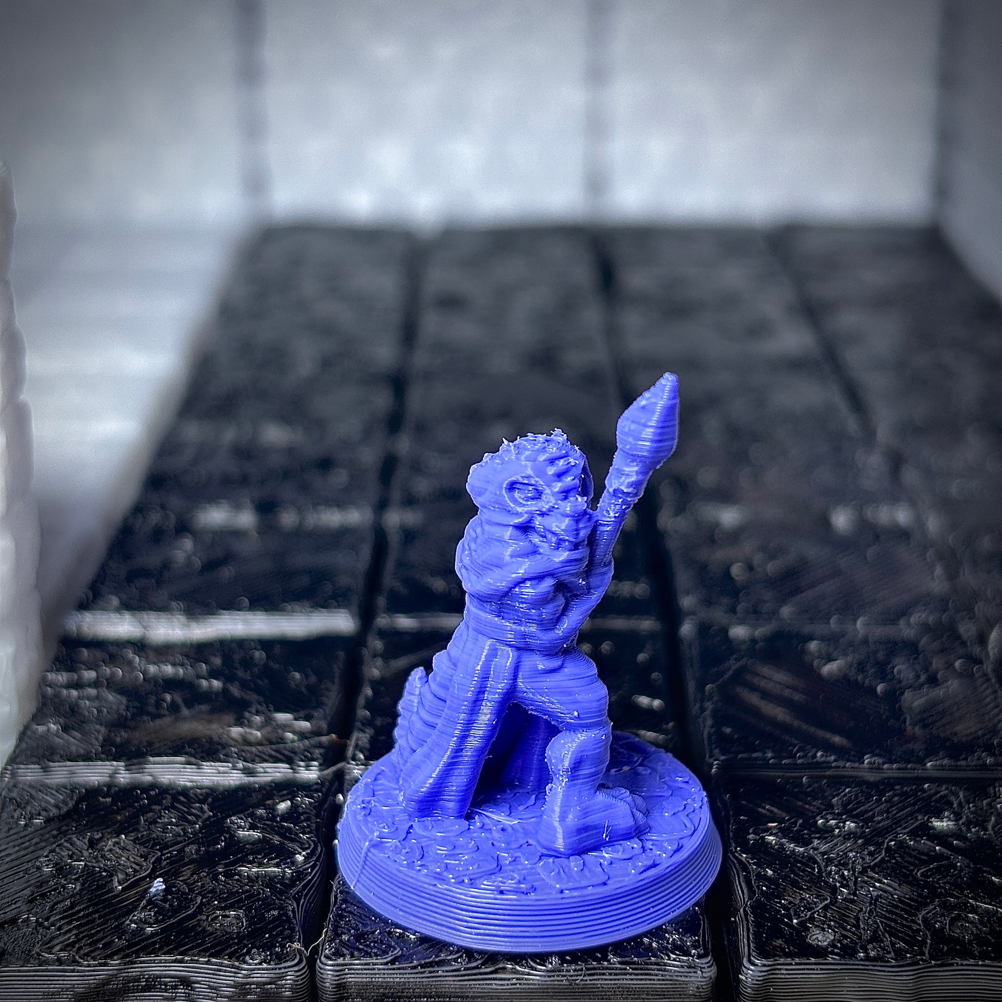 Dê vida às suas aventuras com o Kobold Lanceiro! Este astuto guerreiro, armado com sua lança reluzente, é perfeito para emboscadas e batalhas ao lado de seus aliados.
